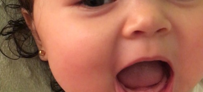 So every night at bath time before we got started with soap I would grab the wash cloth a gently massage her gums as if I was brushing her teeth. She loves this and it must feel good because she doesn’t ever want me to stop. This is eventually how I discovered the first tooth was coming. I noticed the gum line was a little tougher than usual and when I looked I could see there was something white underneath. OMG HER FIRST TOOTH!!!! Well I panicked a little bit because pf all the horror stories I heard. I imagined sleepless nights and never ending tears coming from Penelope. We experienced quite the opposite.